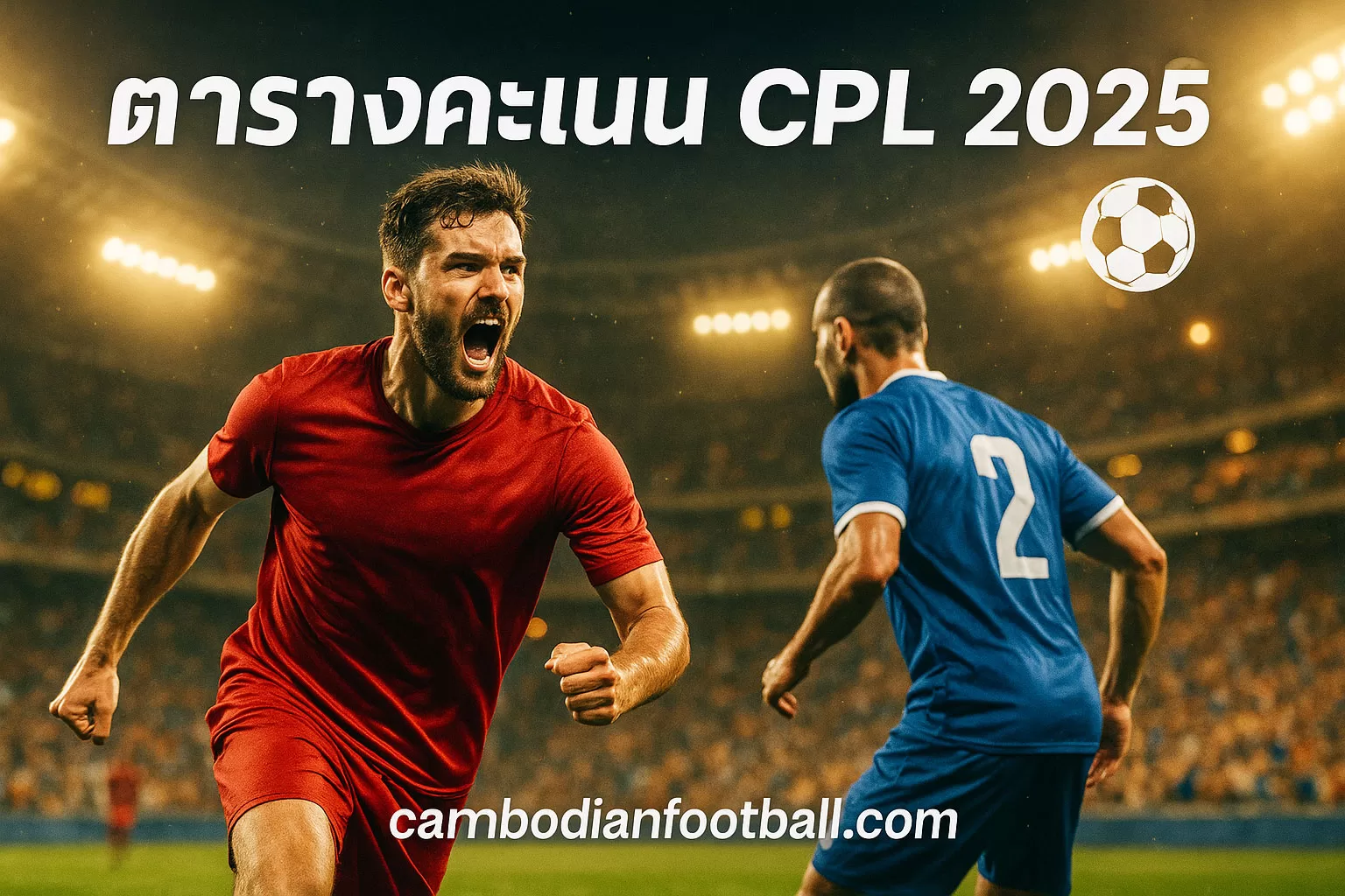 ยินดีต้อนรับแฟนบอลชาวไทยและกัมพูชาทุกคนสู่หน้ารวม ตารางคะแนน Cambodian Premier League (CPL) ฤดูกาล 2025 🎯 ที่นี่คุณสามารถติดตามอันดับทีม คะแนน ฟอร์มการเล่น และใช้ข้อมูลเหล่านี้ต่อยอด ทั้งการเชียร์ทีมโปรดและการวิเคราะห์เดิมพันฟุตบอลอย่างมั่นใจมากขึ้น